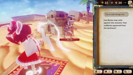Marisa of Liartop Mountain ist ein Abenteuer-RPG, das von Tabletop-Spielbüchern inspiriert ist, in denen Würfelwürfe und Entscheidungen an Weggabelungen den Ausgang einer verzweigten Geschichte mit mehreren Enden bestimmen. Schlüpfe als Reimu in ein literarisches Wunderland und begib dich auf die Suche nach Marisas Aufenthaltsort. Vier Touhou-Heldinnen werden Reimu auf ihrer Reise begleiten, ihr helfen und sie unterstützen, aber auf wen soll Reimu hören?